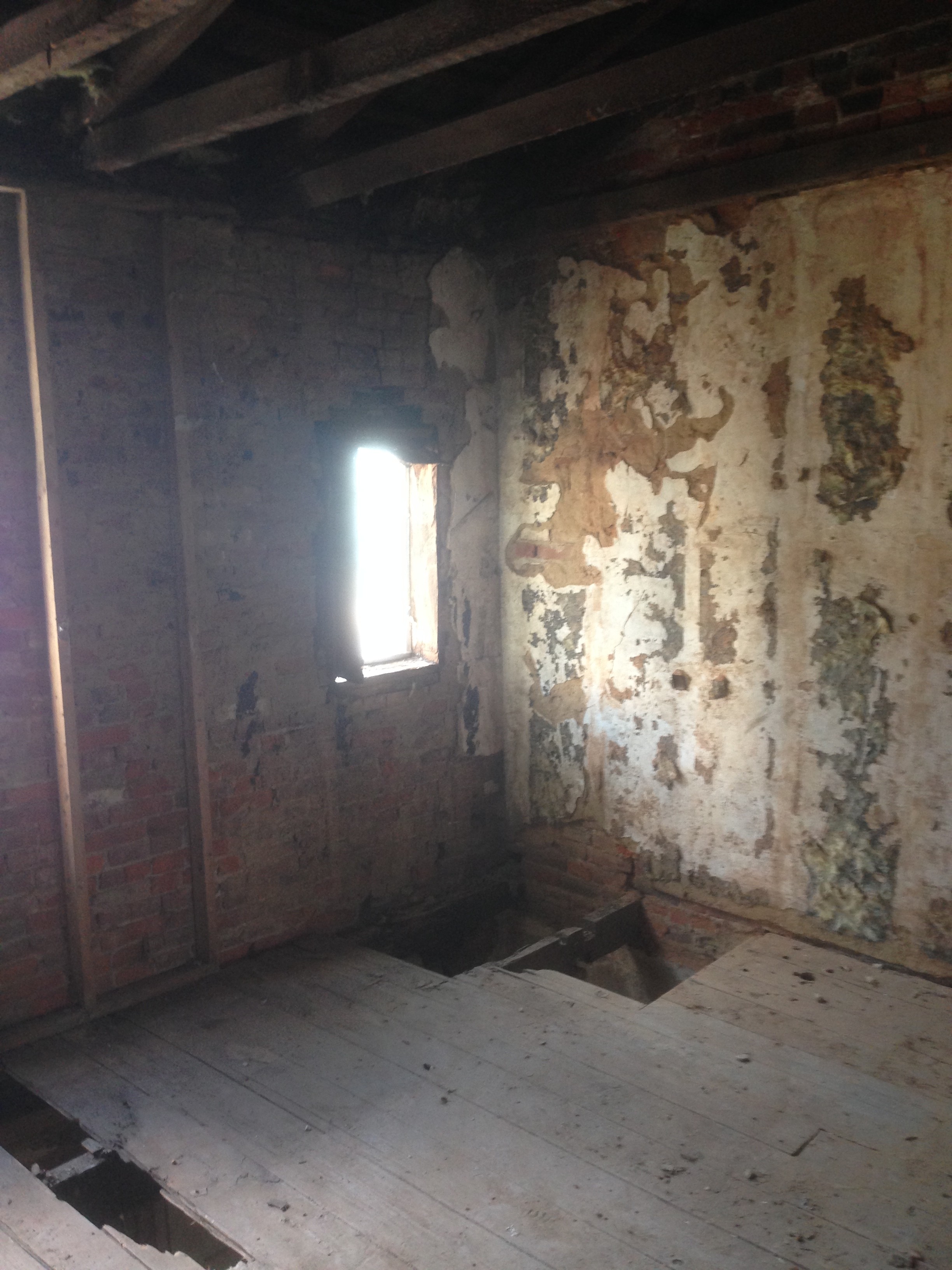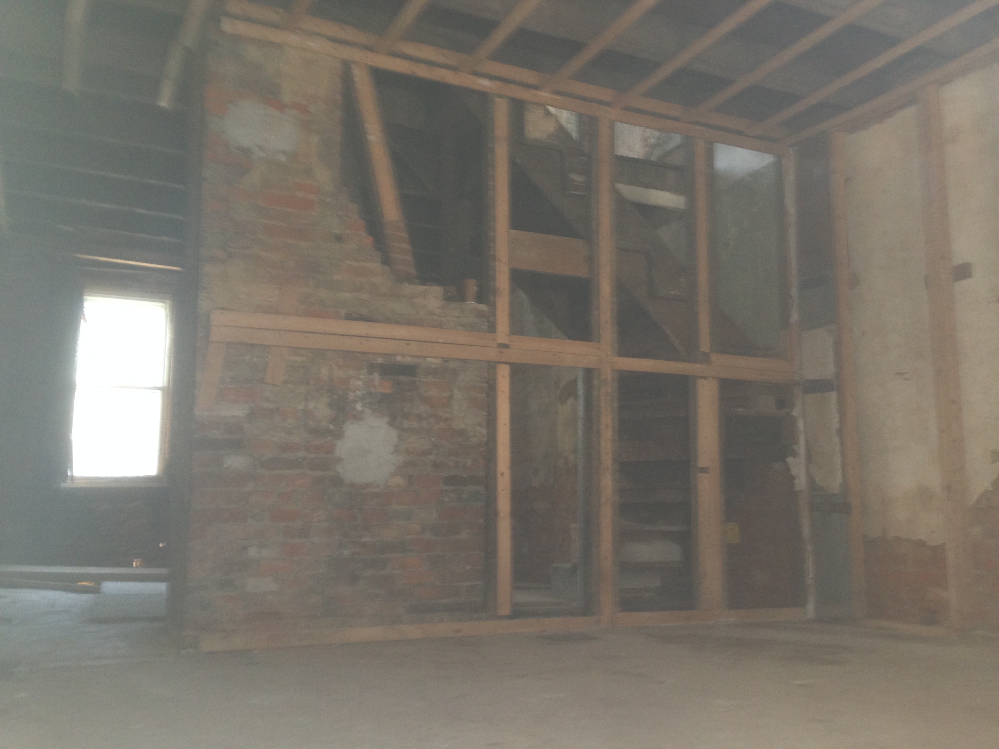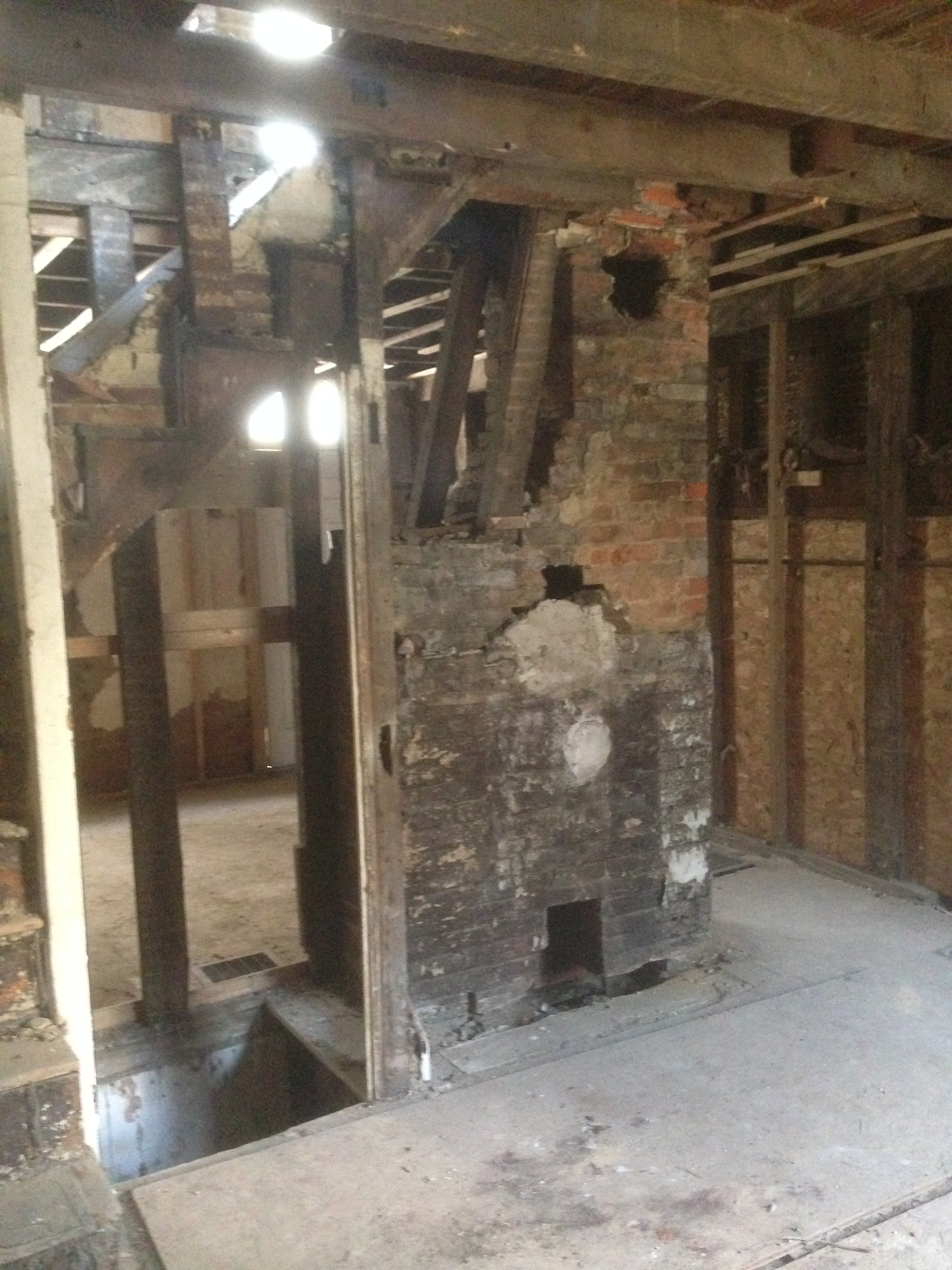 At acquisition, the building was in severe disrepair. The rear masonry wall was on the verge of collapse, fire damage had compromised floor joists and decking, and interior conditions made the structure unsafe to navigate. Immediate stabilization and comprehensive structural reinforcement were required before redevelopment could begin.